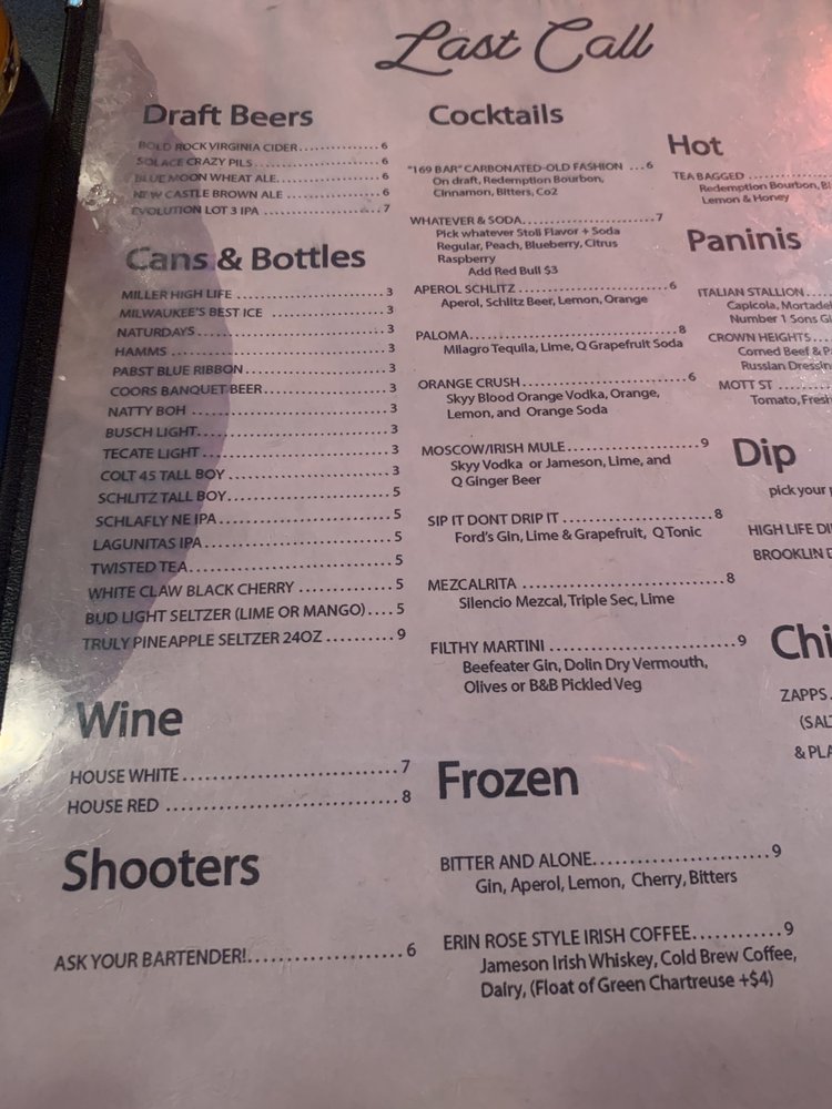 Last Call Bar Menu